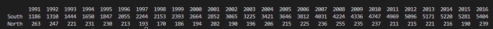 df_ns.index = ['South', 'North'] # 행 인덱스 변경