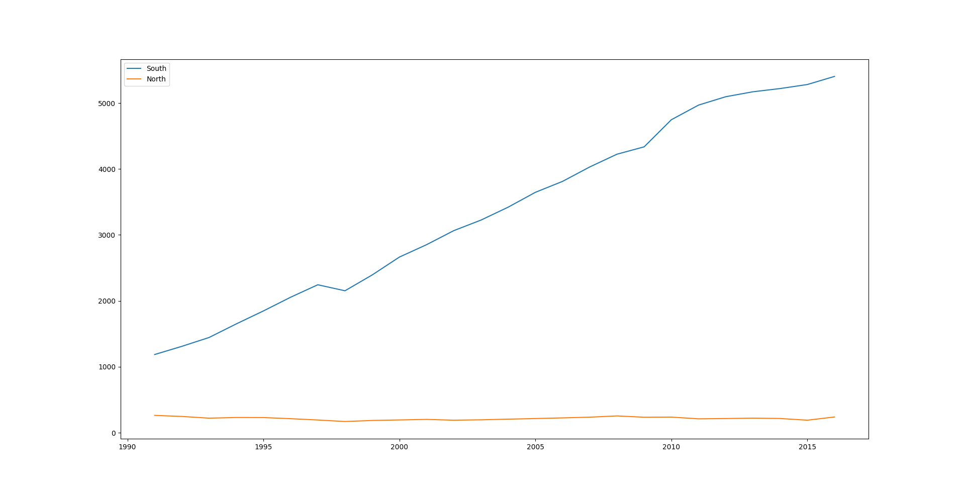 df_ns.index = ['South', 'North'] # 행 인덱스 변경