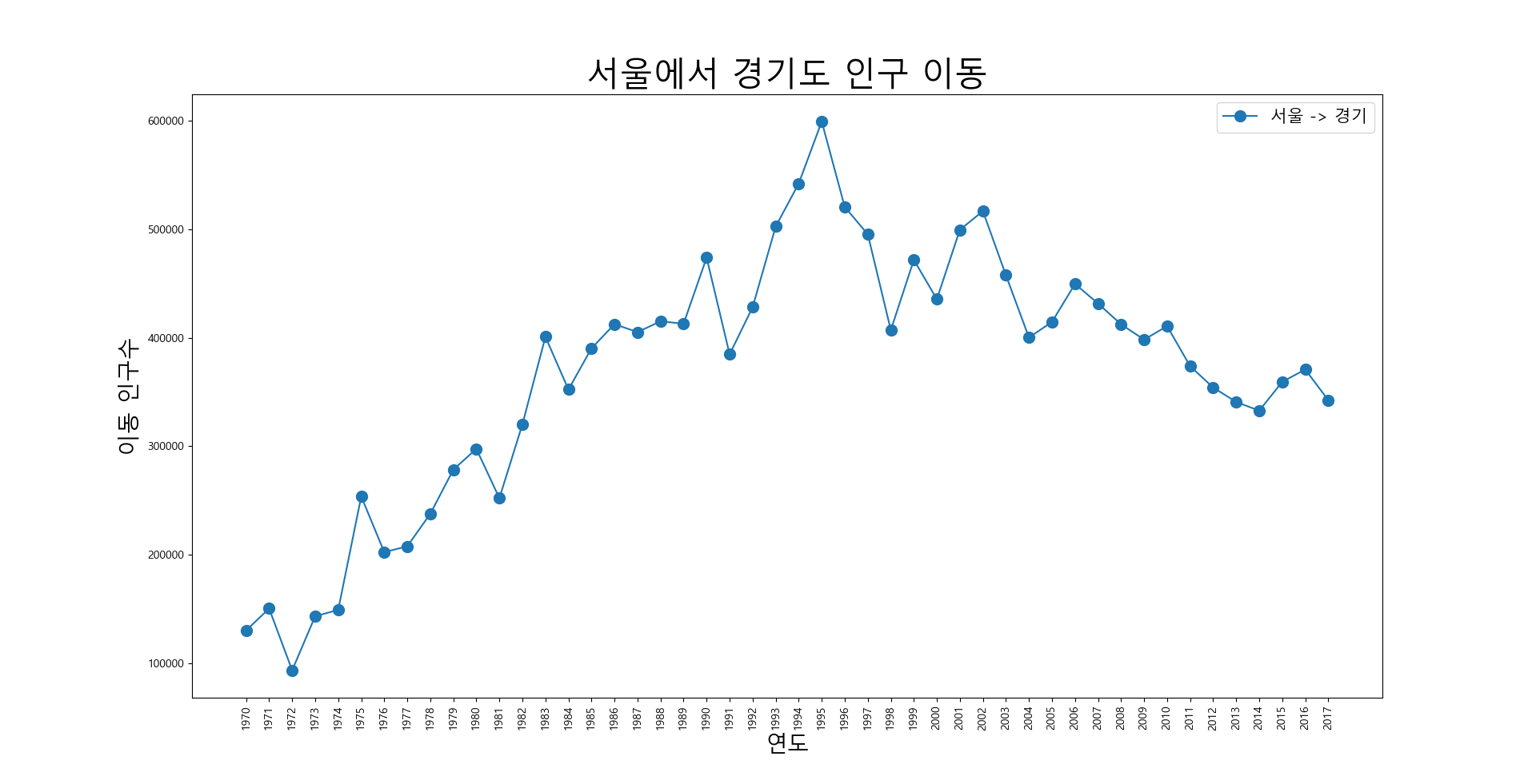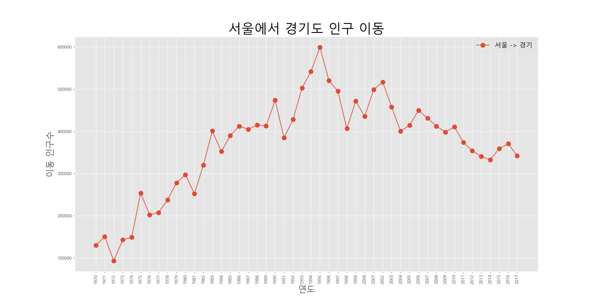 plt.title('서울에서 경기도 인구 이동', size = 30)