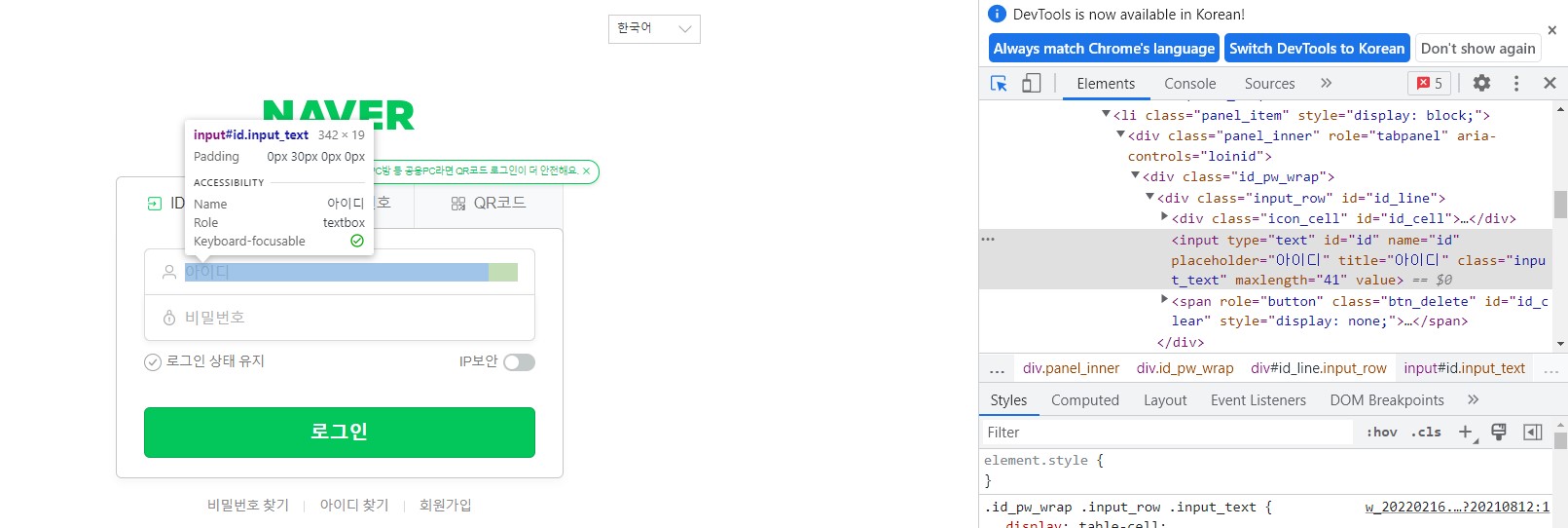 #네이버 아이디 비번 입력