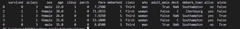 엑셀을 가지고 데이터를 다룰 때 가장 불편한 점이 있다면 데이터의 누락과 오류 같은 문제들을 바로 찾기가 쉽지 않다는 점입니다. 이번 시간에는 파이썬을 통해 누락 데이터에 대해 알아보는 방법과 이를 제거하는 것에 대해 알아보도록 하겠습니다. 우선 데이터는 seaborn 라이브러리의 타이타닉 데이터셋을 사용해보겠습니다. 혹시 seabron 라이브러리가 없다면 아래의 코드를 이용해 설치해야 합니다.