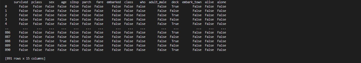 *isnull(): 누락 데이터면 True를 반환하고 유효한 데이터가 존재하면 False를 반환한다.