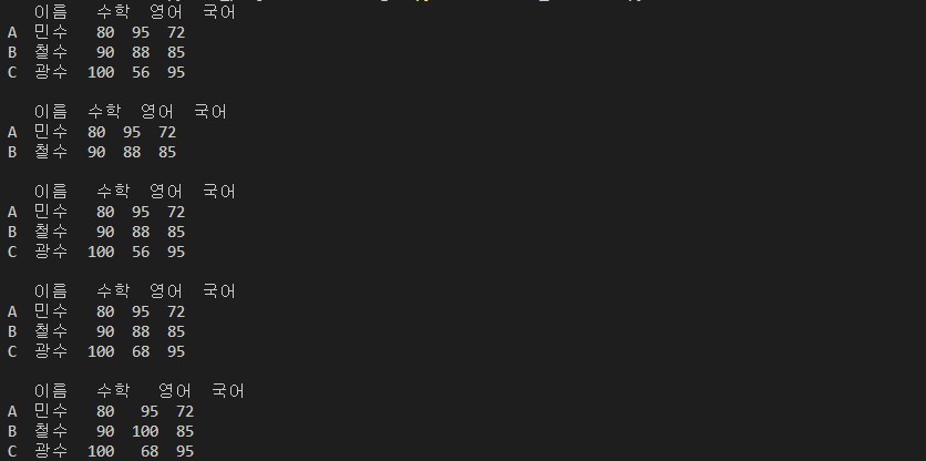 이와 함께 광수와 철수의 영어 점수를 변경해보겠습니다.