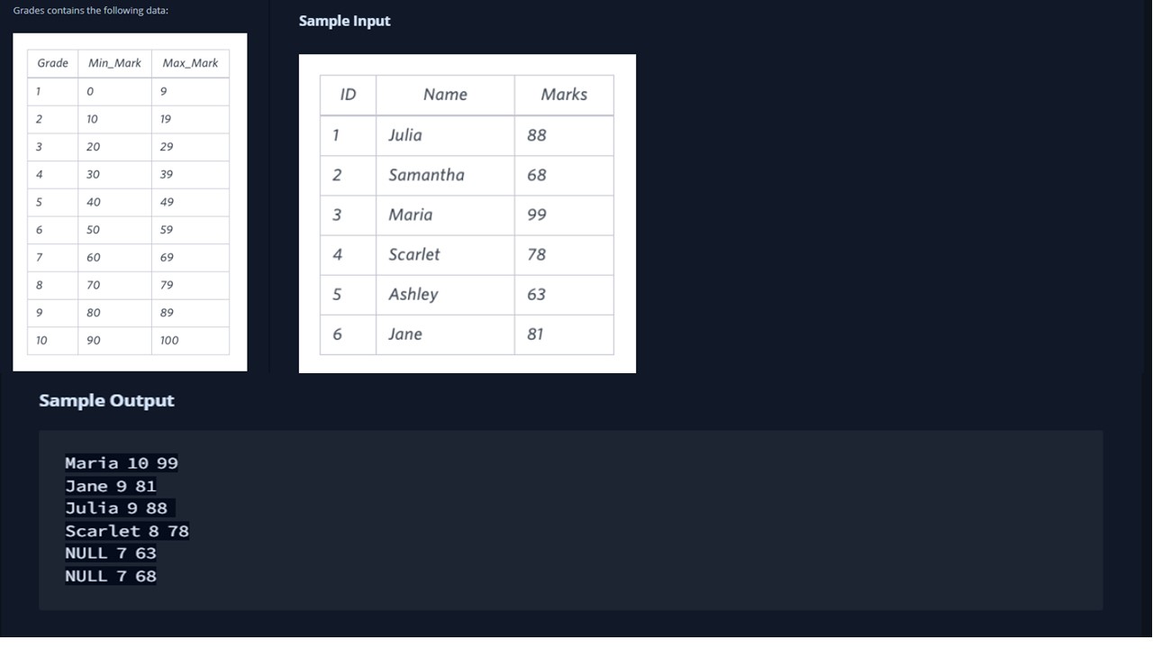 JOIN grades AS g ON a.marks BETWEEN g.min_mark AND g.max_mark