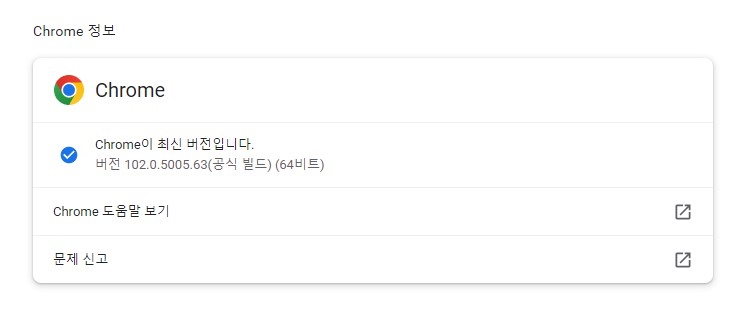 이 과정을 거치면 자신의 크롬 정보를 확인할 수 있습니다. 저는 102.0.5005.63 버전이네요. 버전을 확인했으니 이제 버전에 맞는 크롬 드라이버를 설치해야 합니다. 크롬 드라이버 설치 경로입니다.